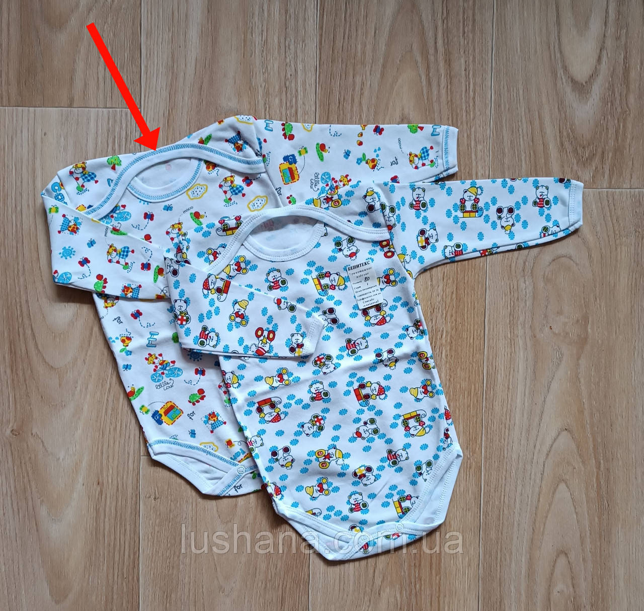 Дитячий бодік з довгим рукавом. Боді із м'якого бавовняного трикотажу (інтерлок). У кроковому шві застібка на кнопки.